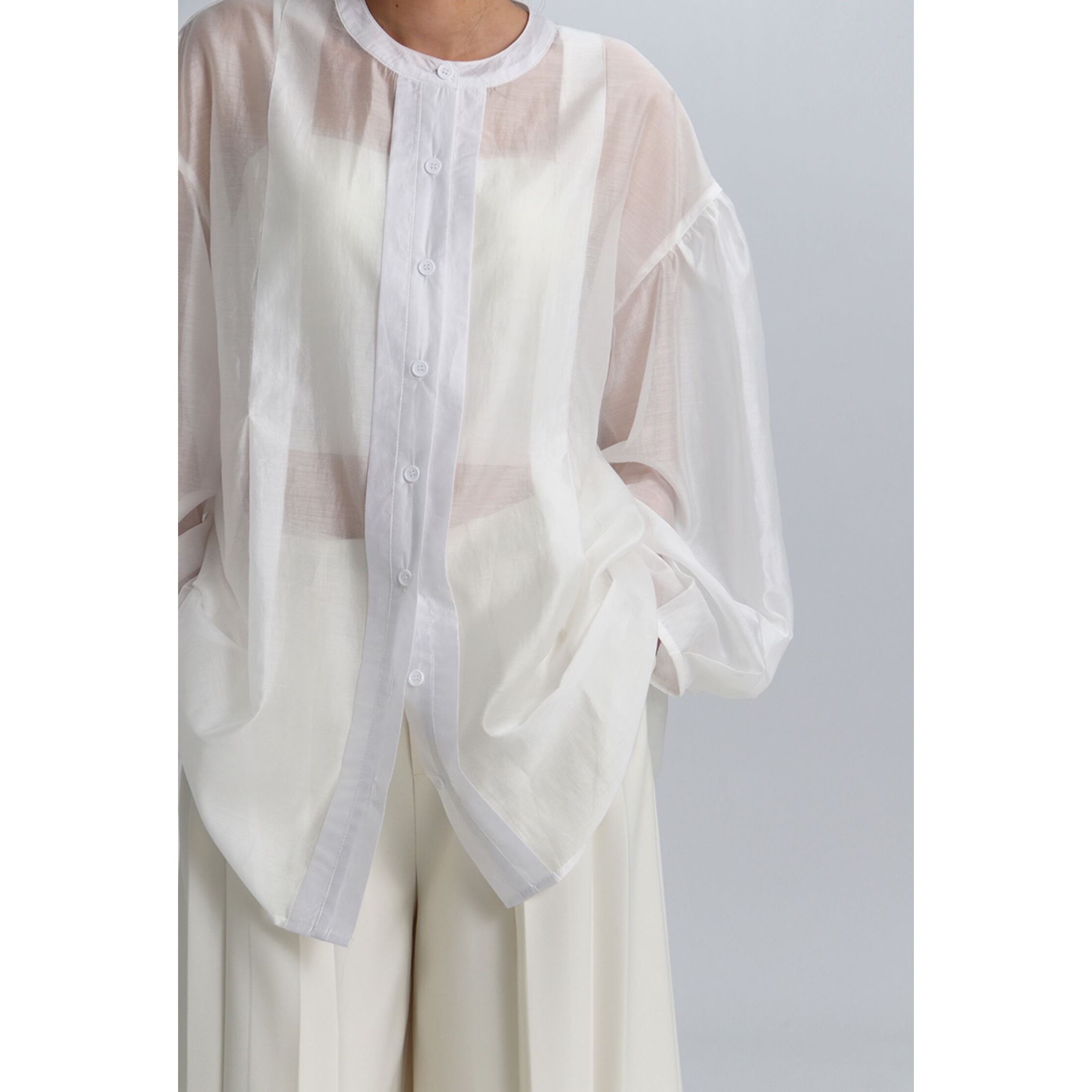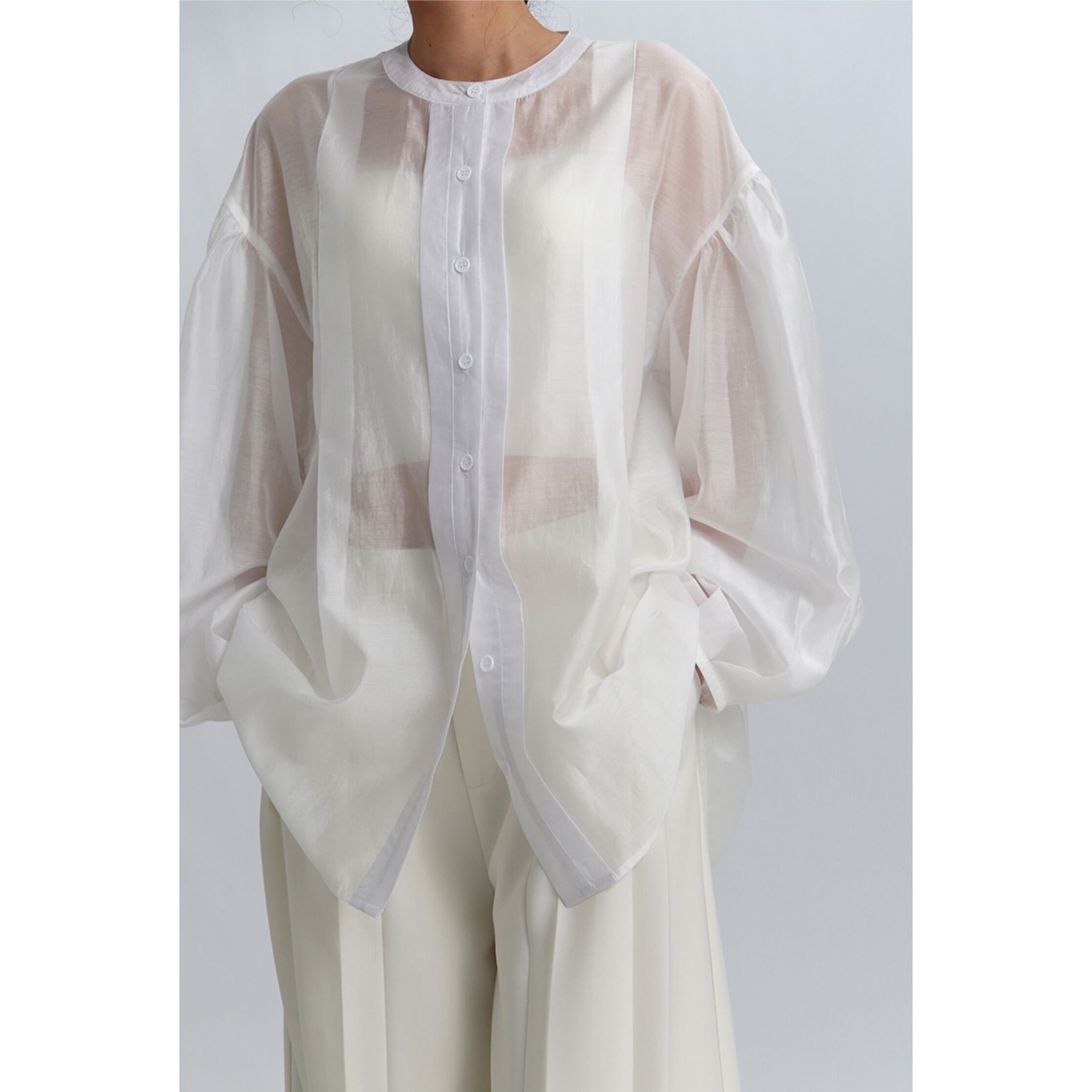 バンドカラー ルーズシルエットシアーシャツ G0713