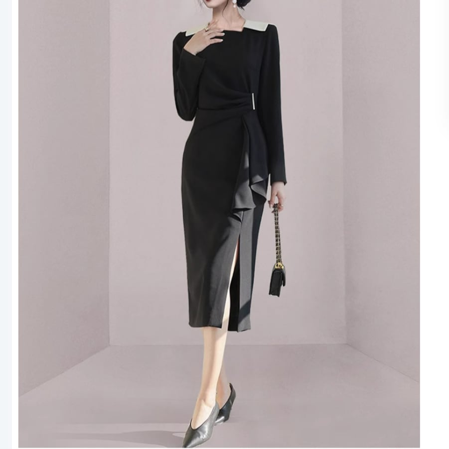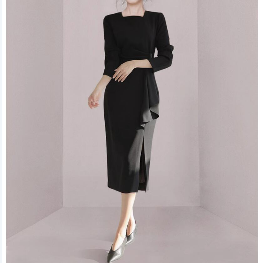 白襟が上品なアクセントの黒ワンピースです。 ドレープとスリットが女性らしさを演出し、スタイルアップ効果も期待できます。 普段使いからパーティーシーンまで、幅広く活躍する一枚です♪ 【商品詳細】 カラー:ブラック 素材:ポリエステル 100% 【商品サイズ】 S:胸囲 84cm/着丈 115cm/袖丈 59cm/ウエスト 70cm/ヒップ 86cm M:胸囲 88cm/着丈 116cm/袖丈 60cm/ウエスト 74cm/ヒップ 90cm L:胸囲 92cm/着丈 117cm/袖丈 61cm/ウエスト 78cm/ヒップ 94cm XL:胸囲 96cm/着丈 118cm/袖丈 62cm/ウエスト 82cm/ヒップ 98cm ※海外製品につき1cm~3cmの誤差がある場合が ございます。予めご了承くださいませ。 表記は目安として参考にしてください。 【お届けについて】 こちらの商品は海外店舗より直接発送となる為、 ご入金から1~3週間前後で発送致します。 (商品の状況によっては3週間以上かかる場合も あります。その際はご連絡させていただきます) ※沖縄・離島は、別途送料を頂戴しております。 ◼️注意事項 ・タイミングによっては 商品在庫切れにより 注文キャンセルとさせていただく場合も ございますので、予めご了承くださいませ。 ・こちらは海外インポート商品となります。 日本製とは検品基準とは異なり、作りが あまい場合がございます。 ・お手持ちのPCやスマートフォンの画面により 商品の色に若干異なる場合がございます。 ・イメージ違いやサイズ等、お客様都合による交換、 返品、キャンセルは対応出来かねます。 ———————————————— ご購入前に必ずお読みくださいませ ↓ ↓ ↓ https://shop.gramu-official.jp/about —————————————————