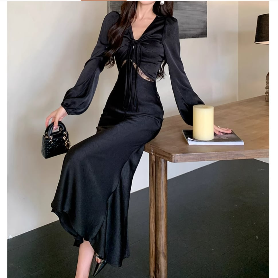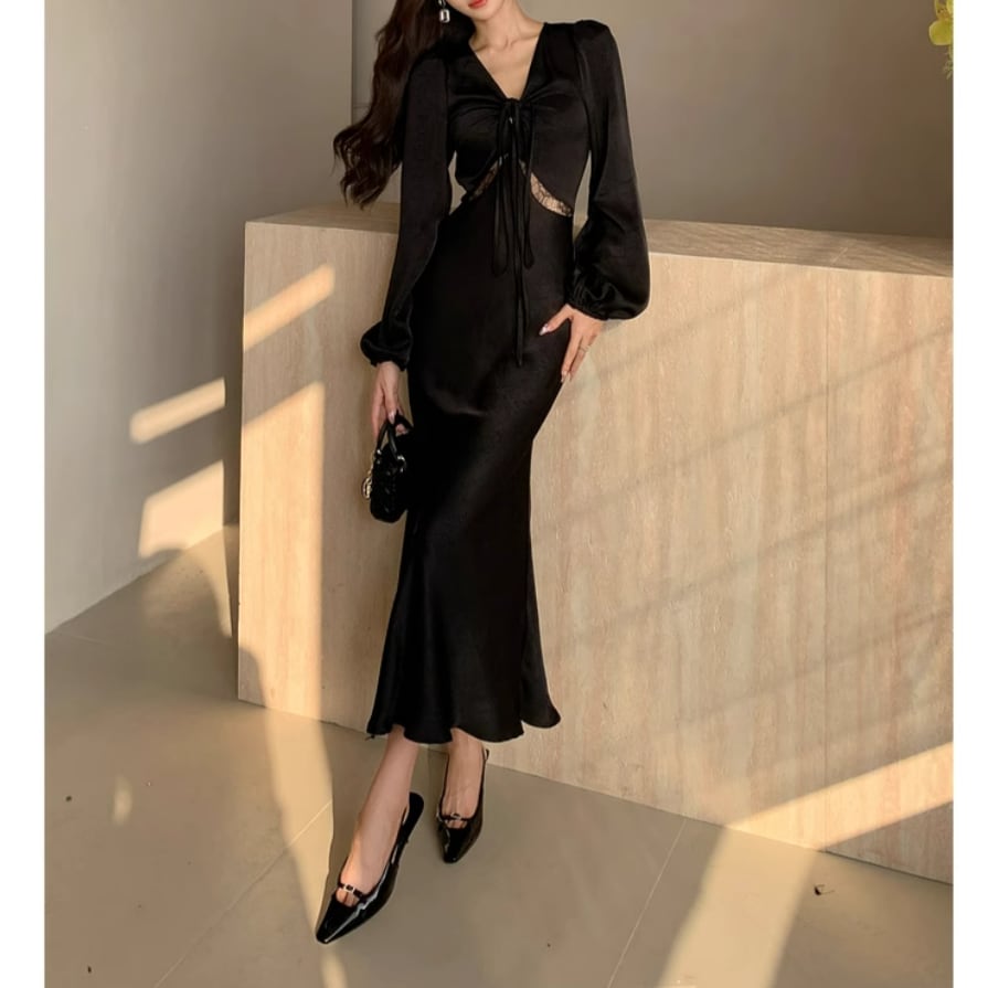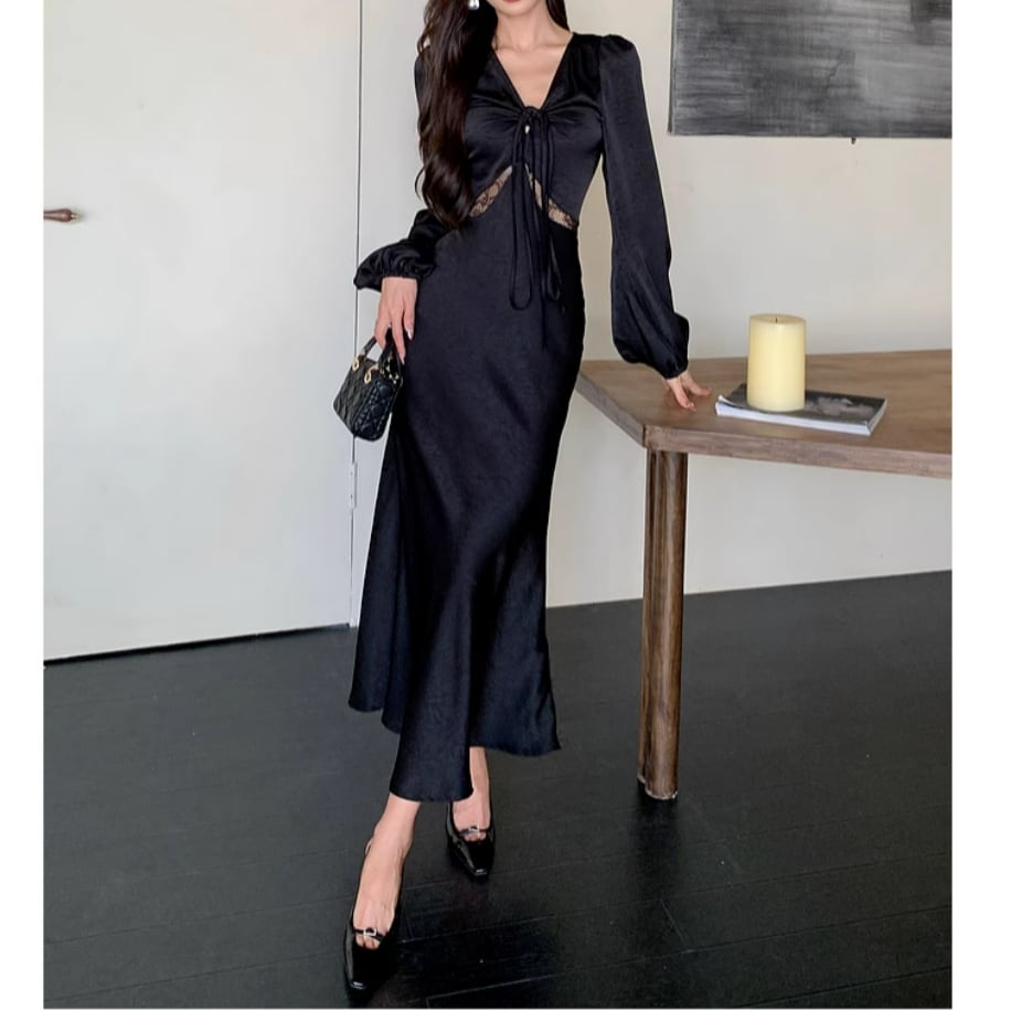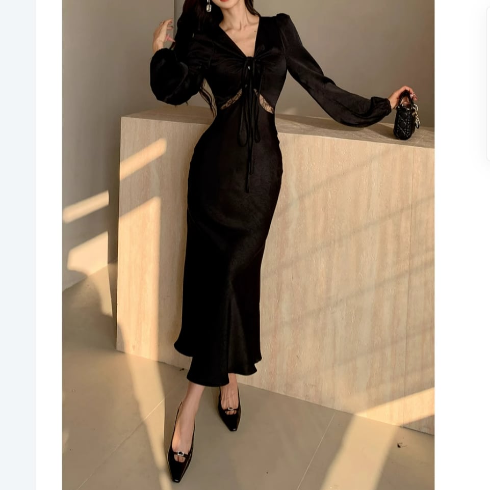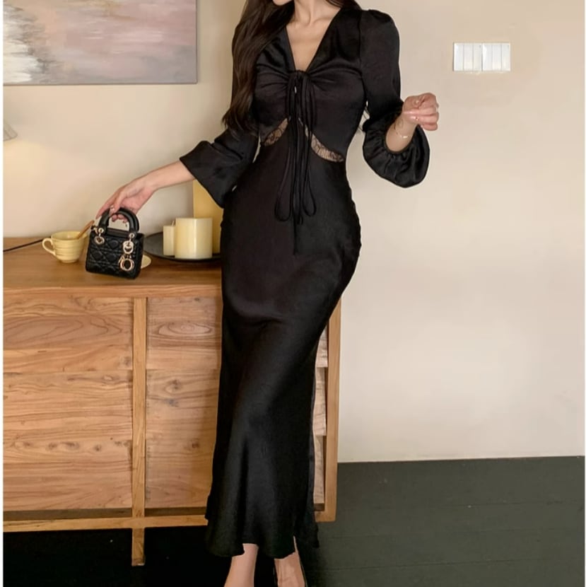 フェミニンなラインが魅力のブラックドレス。 繊細なディテールと大胆なカットでセクシーな大人の魅力を♪ 【商品詳細】 カラー:ブラック 素材:ポリエステル 100% 【商品サイズ】 S:胸囲 83cm/着丈 130cm/袖丈 68cm/ウエスト 68cm M:胸囲 87cm/着丈 131cm/袖丈 69cm/ウエスト 72cm L:胸囲 91cm/着丈 132cm/袖丈 70cm/ウエスト 76cm XL:胸囲 95cm/着丈 133cm/袖丈 71cm/ウエスト 80cm ※海外製品につき1cm~3cmの誤差がある場合が ございます。予めご了承くださいませ。 表記は目安として参考にしてください。 【お届けについて】 こちらの商品は海外店舗より直接発送となる為、 ご入金から1~3週間前後で発送致します。 (商品の状況によっては3週間以上かかる場合も あります。その際はご連絡させていただきます) ※沖縄・離島は、別途送料を頂戴しております。 ◼️注意事項 ・タイミングによっては 商品在庫切れにより 注文キャンセルとさせていただく場合も ございますので、予めご了承くださいませ。 ・こちらは海外インポート商品となります。 日本製とは検品基準とは異なり、作りが あまい場合がございます。 ・お手持ちのPCやスマートフォンの画面により 商品の色に若干異なる場合がございます。 ・イメージ違いやサイズ等、お客様都合による交換、 返品、キャンセルは対応出来かねます。 ———————————————— ご購入前に必ずお読みくださいませ ↓ ↓ ↓ https://shop.gramu-official.jp/about —————————————————